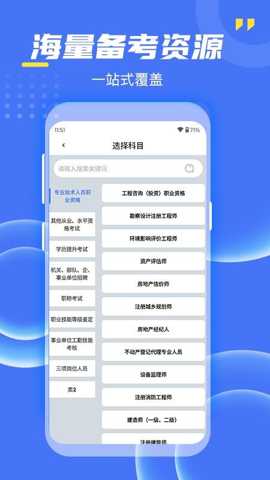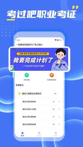 考过吧职业考证是一款专注于职业资格认证考试备考的移动学习软件,汇聚了海量、精准、时效性强的题库资源与系统化知识体系。其内容覆盖建筑设计、财务会计、医疗卫生、信息技术、法律司法、教育师资等数十个主流行业领域的关键职业资格考试,为备考者构建一个高效、便捷、个性化的掌上学习环境,助力用户科学规划复习路径,精准攻克考点难点,从而提升考试通过率,实现职业发展目标。