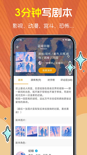 平台收录了涵盖言情、悬疑、古风、广播剧等多种题材的剧本,既有经典作品也有用户原创内容,满足不同风格与层次的演绎需求。