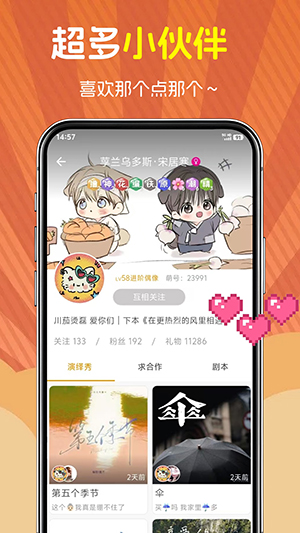 萌语是一款专注于声音演绎与剧本创作的互动娱乐软件,集合了海量剧本资源、实时对戏录音、作品发布分享及个性化配音定制等功能,为声控爱好者、配音演员及剧本创作者打造一个沉浸式的音频互动社区。通过平台发现多样化的剧本内容,与同伴实时对戏并录制作品,还能发布个人配音需求,匹配心仪的声线,实现从创作到分享的全流程声音体验。