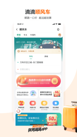 整合网约车、出租车、顺风车、共享单车、电单车及货运服务,构建覆盖多场景的立体化移动出行网络。