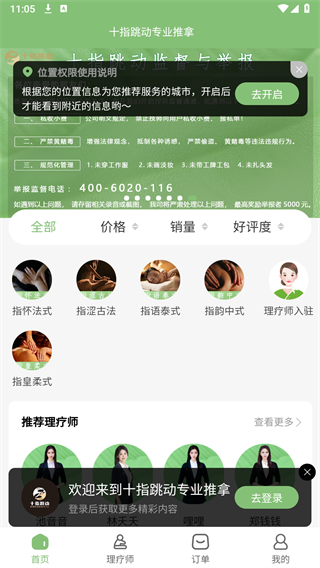 十指跳动是一款专注于提供专业上门按摩服务的移动软件,汇集了多种经过认证的按摩技法与资深理疗师资源。用户能够根据个人健康需求与偏好,便捷地预约附近认证技师上门服务,享受包括指怀法式、指涩古法、指语泰式、指韵中式及指皇柔式在内的多元化、个性化理疗体验,为用户带来高效、安全且舒适的健康养生软件。