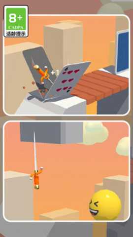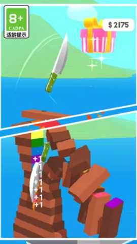 核心目标是操控飞刀抵达关卡终点。主要交互方式为点击屏幕:点击后,飞刀会从当前位置开始旋转并加速下落;松开手指,飞刀则依据当前旋转惯性向前弹射。掌握点击的时长与节奏是控制飞刀飞行距离与落点的关键。初期关卡应着重练习基础的下落切割,感受刀锋与不同材质物体接触时的差异。