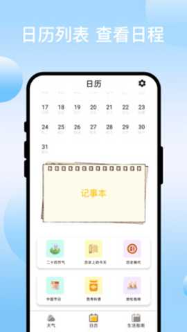 内置日历工具支持添加日程,并自动关联对应日期的天气预报,在日程提醒时同步展示天气状况,优化活动决策。