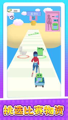 主要玩法围绕高速跑酷与即时收集展开。控制角色在自动生成的彩虹赛道上向前奔驰,通过简单的左右滑动指令规避突然出现的陷阱与障碍,尽可能触碰悬浮在空中的各色物资方块。这些物资是驱动后续创意环节的关键货币。