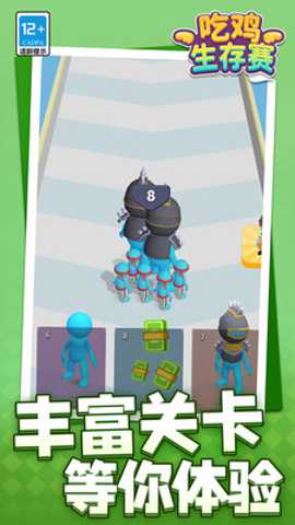 吃鸡生存赛是一款融合了卡通画风与策略竞技元素的多人联机冒险游戏,将置身于一个危机四伏的广阔世界,通过搜集资源、强化装备并与队友紧密配合,在动态变化的战场中生存到最终目标是成为唯一的胜利者,整个过程充满了紧张刺激的战术博弈与团队协作乐趣。