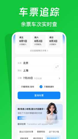 火车票踪助手是一款专注于铁路出行服务的移动软件,为用户提供全面、便捷的火车票务软件。整合了全国范围内的列车时刻、票价查询、在线购票、行程管理及智能提醒等核心服务,通过技术创新优化用户的购票体验与出行规划,让每一次铁路旅程都更加省心、高效。