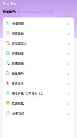 用户可在个人中心轻松绑定及管理其智能监护设备,实现设备与软件的稳定连接,确保数据流的畅通与监测的持续性。