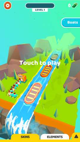 核心目标是在每个关卡的规定时间内,安全运送尽可能多的游客。屏幕下方会不断有游客走向码头,需看准皮划艇漂到码头正前方的瞬间,点击屏幕将其送上船。关键在于预判皮划艇的漂流轨迹与速度,确保点击时艇身平稳且正对码头。