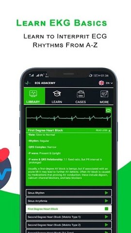 听诊是一款专注于心电图教学与临床辅助分析的医学软件,通过动态可视化技术与海量真实病例库,帮助医学从业者及学习者系统掌握心电图判读技能。软件整合了数百种常见及罕见心脏异常的12导联心电图轨迹,并配备详尽的波形解析与病例分析,构建出从基础概念到复杂心律失常的完整学习路径。