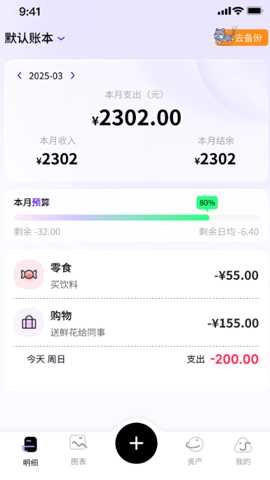 提供一键记账与自定义常用模板功能,针对高频消费场景可预设金额、分类与备注,大幅提升日常记账效率。