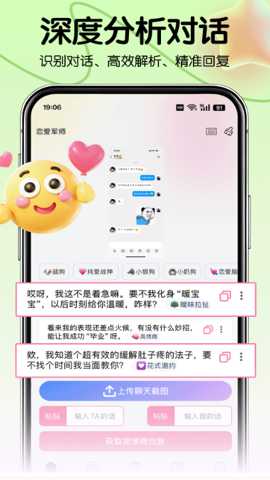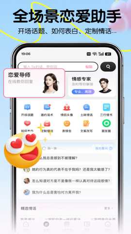 恋爱军师是一款专注于提升用户社交与情感沟通能力的移动软件,通过整合海量经过场景化设计的聊天话术与互动策略,帮助使用者在各类人际交往情境中更自信、更得体地进行表达。其核心在于运用行为心理学与语言艺术原理,构建一个实时、个性化的话术推荐与学习体系,让用户能够根据自身角色、对话对象及具体场合,快速获取并软件恰当的语言素材,从而优化沟通效果,促进关系发展。