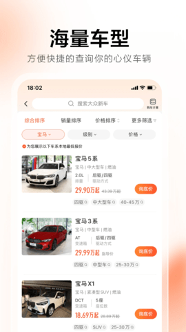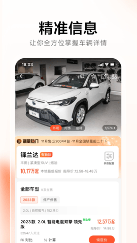 与众多汽车品牌授权经销商建立深度合作,能够为用户提供门店专属的购车优惠价格、预约试驾体验以及新车上市优先知情权。