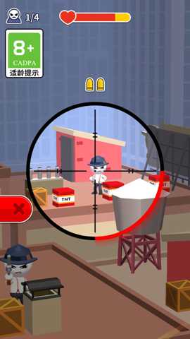 核心体验围绕瞄准与射击展开。通过手指在屏幕上的滑动操作,控制狙击镜的十字准星移动,寻找最佳射击角度。长按屏幕可以进入专注模式,暂时减缓时间流速,便于在复杂环境下锁定关键目标或触发场景中的爆炸物,油桶或炸药箱,利用环境爆炸清除成群的对手往往是高效的通关策略。