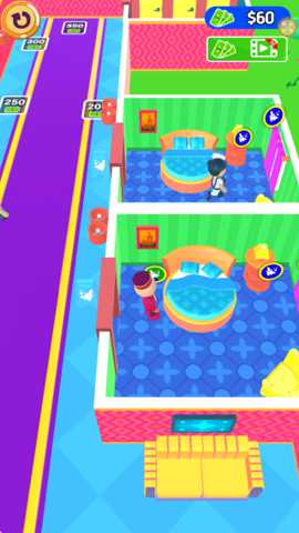 模拟真实市场供需关系,房价、服务成本与客流量相互影响,形成复杂且富有挑战性的经营环境。