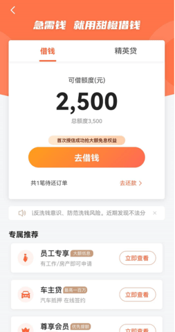 甜橙借钱是一款集成于翼支付生态内的小额信贷服务产品,为用户提供高效、便捷的短期资金周转软件。其依托翼支付的成熟风控体系与技术支持,实现了纯线上申请、自动化审批与快速放款,无需任何抵押或担保。该服务主要面向有小额、短期借款需求的用户,借款额度与期限设计灵活,能够有效满足日常应急消费或临时性资金短缺场景,操作流程简洁直观,在风险可控的前提下提升金融服务可得性。
