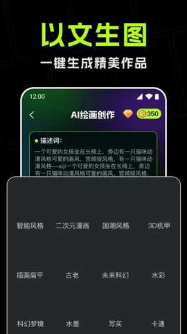 内置涵盖油画、水彩、卡通、科幻、写实等多种艺术流派与风格的预设模板,为用户创作提供明确的方向引导。