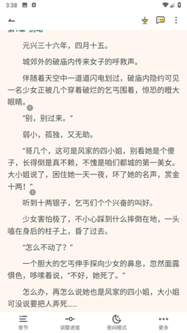 支持字体类型、大小、间距、背景色及翻页动画的自定义调整,提供护眼模式与全局亮度调节,适配不同用户的视觉偏好与阅读环境。