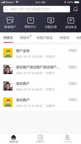 支持实时登记新增商户信息并提交审核,用户可随时跟踪审核进度,确保商户资料及时更新与准确管理。