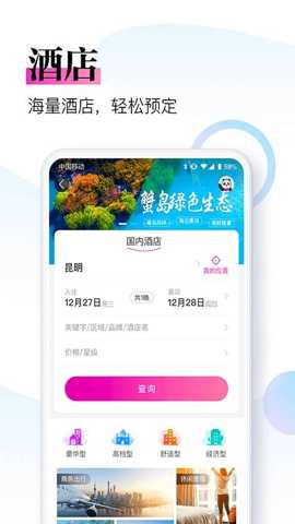 支持在多种网络环境下快速完成机票、酒店及门票的预订操作,简化传统繁琐的流程步骤。