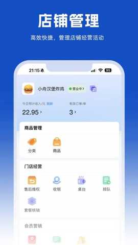 小舟送餐商家端是一款专为餐饮外卖商户设计的综合性店铺运营管理软件,通过数字化手段赋能商家日常经营。其核心在于整合订单处理、数据分析、库存监控与客户关系维护等关键环节,形成一个高效协同的工作流,从而显著提升门店的运营效率与管理精度,帮助商家在竞争激烈的外卖市场中实现精细化运营与业绩增长。