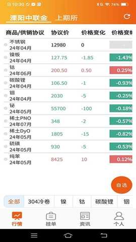 支持用户创建完全个性化的自选列表,可跨品类添加关注的期货合约、现货价格指标或资讯标签,并独立设置预警条件。