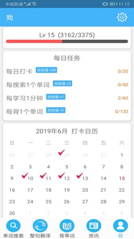 在记忆功能模块中,用户可自主设定每日学习词汇数量、选择特定词库(如考研词汇),并选择记忆模式。系统将根据艾宾浩斯遗忘曲线原理,自动安排复习节点。