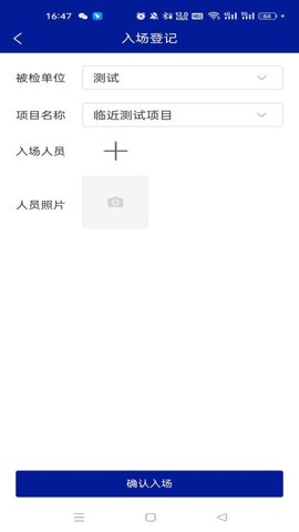 用户需先完成APP注册。注册成功后,根据所属单位类型(检测、重点或监管)选择对应角色登录,系统即会自动加载相应的功能模块。