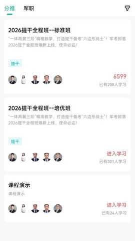 题库与课程资源严格对标当年军考大纲,并由专业教研团队维护更新,确保学习内容的时效性与准确性。