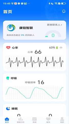 依托可穿戴设备的光学传感器,实现24小时不间断的心率与呼吸频率追踪,记录静息心率、活动心率及呼吸波形,为评估心血管与呼吸系统功能提供基础数据。