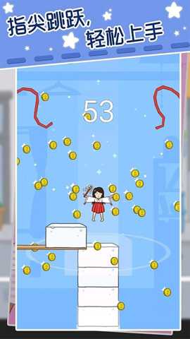 跳跳少女是一款以精准跳跃与堆叠为核心玩法的休闲益智类作品,通过触控屏幕操控角色,在动态生成的豆腐块平台上持续向上攀登,挑战不断变化的高度目标与关卡障碍,体验节奏明快且富有策略性的闯关乐趣。