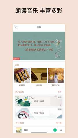 从诵读模仿、意境体会到背景深究,提供了循序渐进的学习模块,适合不同基础的用户构建完整的古典诗词认知体系。