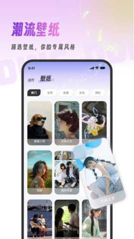 除音频资源外,还提供大量精选主题壁纸,风格多样,用户可进行音画一体化的个性化装饰,实现手机视听感官的全面定制。