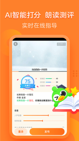用户可选择经典诗词或文章段落,收听标准范读后进行模仿配音,系统即时进行语音评测与反馈,针对性改善发音与语调。