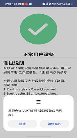 APT检测是一款专注于移动设备安全状态深度分析的专业工具,帮助用户精确识别设备是否处于Root或越狱等特殊权限环境。通过扫描系统关键文件、权限配置与软件签名,提供详尽的设备完整性报告,适用于安全研究人员、软件开发者及对设备安全有较高要求的普通用户,确保软件运行环境的安全与合规。