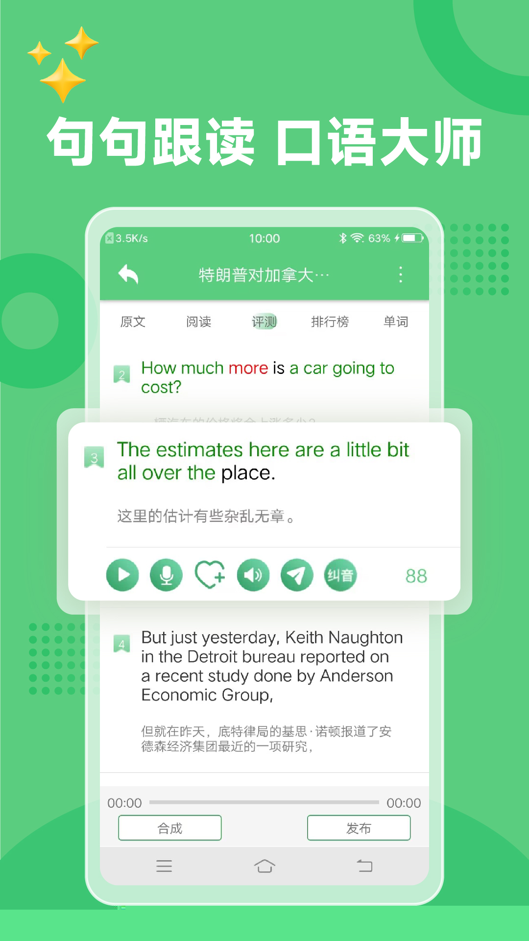 集成先进的语音识别与评估技术,能够对用户的跟读发音进行实时打分,精准定位发音错误与缺陷,提供个性化的改进建议。