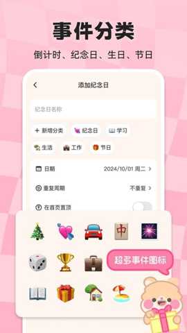 提供丰富图标与颜色标签,支持自定义标注,让重要日期一目了然且充满个性。