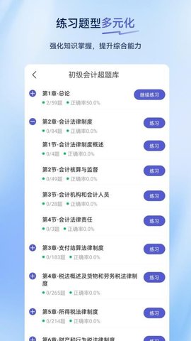 初级会计超题库是一款专为初级会计职称考试备考者打造的专业学习辅助软件,通过系统化的题库练习与知识点解析,帮助用户高效掌握初级会计实务与经济法基础两大科目的核心考点与应试技巧。其整合了海量真题、模拟题与章节练习,并辅以智能学习分析,能够根据个人掌握情况动态调整复习重点,是考生进行科学备考、查漏补缺、提升应试能力的得力助手。