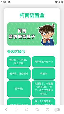 柯南语音盒是一款基于名侦探柯南系列作品开发的语音资源整合工具,汇集了大量角色台词、经典音效及背景音乐,所有内容均可免费调用。其核心设计围绕快速检索与即时播放展开,覆盖从早期剧场版到近年TV动画的经典片段,能够满足日常娱乐、社群互动、内容创作等多种场景下的音频需求。