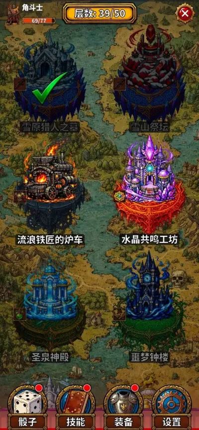 装备系统是扭转不利战局或扩大优势的战略支点。许多强力装备效果需要消耗骰子来激活。一个高级技巧是,利用那些点数较小、或当前不符合敌人弱点的闲置骰子来触发装备效果。用一个低点数的火焰骰子激活回合结束时造成额外伤害的装备,远比将其用于一次微弱的直接攻击价值更高。地图中散布的休整点是重要资源,合理规划路线以确保在挑战强大首领前能进行恢复与调整。