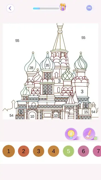交互逻辑清晰明了,选取颜色后点击对应数字区域即可完成填充,色彩边界自动识别,避免了涂出线外的尴尬,使得整个填色过程流畅而精准,真正实现了老少咸宜。