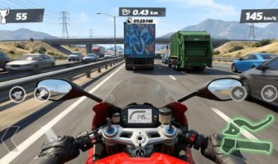 物理引擎模拟了摩托车的真实惯性、抓地力与氮气加速时的动态特性,倾斜感应与触屏操控方案均经过优化,确保了灵敏而富有层次的驾驶手感。