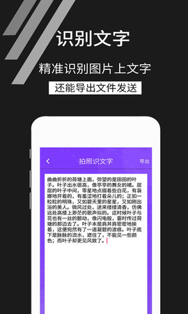 拍照识文字是一款基于光学字符识别技术的智能信息处理工具,能够将包含文字的图像,如纸质文件、屏幕截图或手写笔记,快速准确地转换为可编辑、可检索的数字化文本。简化了从物理介质到电子文档的转换流程,有效解决了信息录入、资料归档和内容复用的效率瓶颈,是办公、学习及日常信息管理的得力助手。