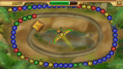核心目标是阻止彩色珠链坠入终点的骷髅头。通过手指在屏幕上滑动以调整石蛙的发射方向,点击屏幕即可将当前持有的弹珠射出。当轨道上相邻的三个或更多同色弹珠连接在一起时,们便会消除,该段珠链也会随之消失,从而延缓整体前进的步伐。最终,在珠链抵达终点前将其全部清除,即可成功通关。