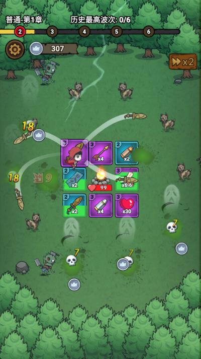 核心目标是操控英雄在环形法阵上生存,并击退所有进攻波次的怪物。主要玩法始于观察法阵布局,其上分布的剑形图标代表攻击武器,心形图标代表生命恢复,星形或其他符号则代表临时性增益效果。需要通过点击屏幕,为英雄设定奔跑目标,当其经过相应图标时便会自动触发效果。触碰武器图标可发射弹幕攻击怪物,触碰生命图标则能回复一定血量。
