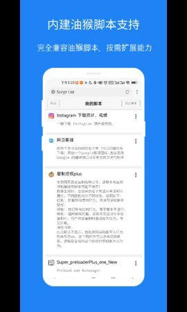 主要支持以用户脚本(UserScript)形式进行功能扩展,这与桌面浏览器插件原理类似但更轻量。丰富的脚本库足以实现去广告、网盘直连、视频解析等众多增强功能,满足大部分进阶需求。