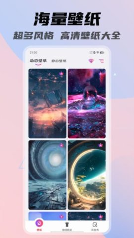 专门整合了丰富的动态壁纸内容,包括自然现象、萌宠动画、科技光影等多种生动主题,为手机桌面注入活力,带来与众不同的交互视觉感受。