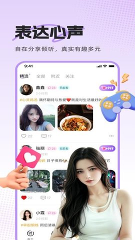 提供类似时间线的动态发布功能,用语音或图文记录当下心情,好友可实时浏览、点赞或评论,构建持续互动的社交关系链,缓解孤独感。