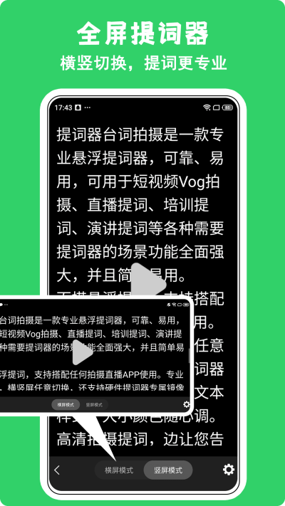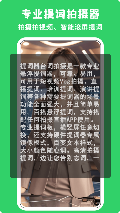 提供可任意拖拽和调整透明度的悬浮提词窗口,该窗口能始终显示在其他软件界面之上,使得用户在直播或使用其他拍摄软件时,视线无需离开拍摄画面即可清晰阅读台词。