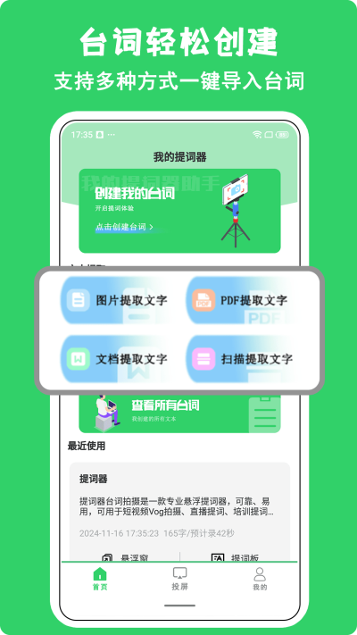 支持从本地文档直接导入文本内容,兼容TXT、DOC等常见格式,内置简易的文本编辑器,便于在提词前进行的校对、分段与重点标注。
