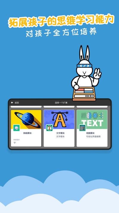 支持连接micro:bit、LEGO机器人等硬件,并能通过添加扩展模块探索人工智能、翻译等前沿领域。